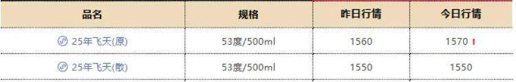 截至发稿时,郑州市场的飞天茅台价格仍在低位调整。据“今日酒价”等白酒行情汇总平台显示,25年飞天(原)现在价格为1570元/瓶,比昨日16号微涨10元。