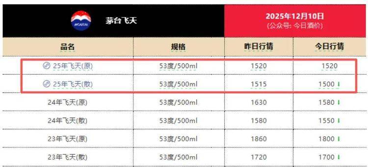 同期,京东平台售价为1620元/瓶,天猫超市为1745元/瓶。有业内人士分析认为,电商平台的短期低价活动,叠加年底资金回笼需求,是导致线下渠道出现集中出货的原因之一。