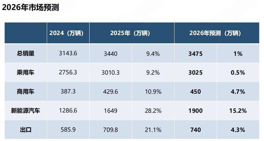 “2026年,我国乘用车总销量将达3025万辆,同比增长0.5%。”中汽协方面预测。