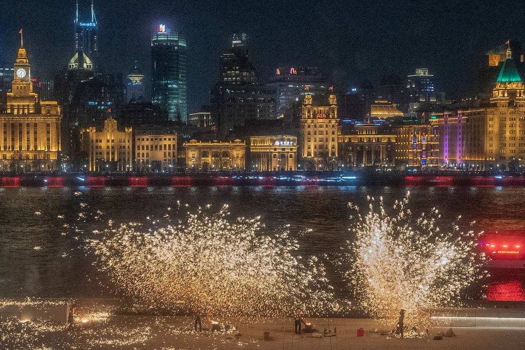 铁水滚烫,星河飞溅。非遗传承人挥动铁勺,将铁水泼向天际,如流星雨坠落浦江,与陆家嘴的璀璨灯火交相辉映……黄浦江畔的“打铁花”表演,在社交平台迅速走红。
