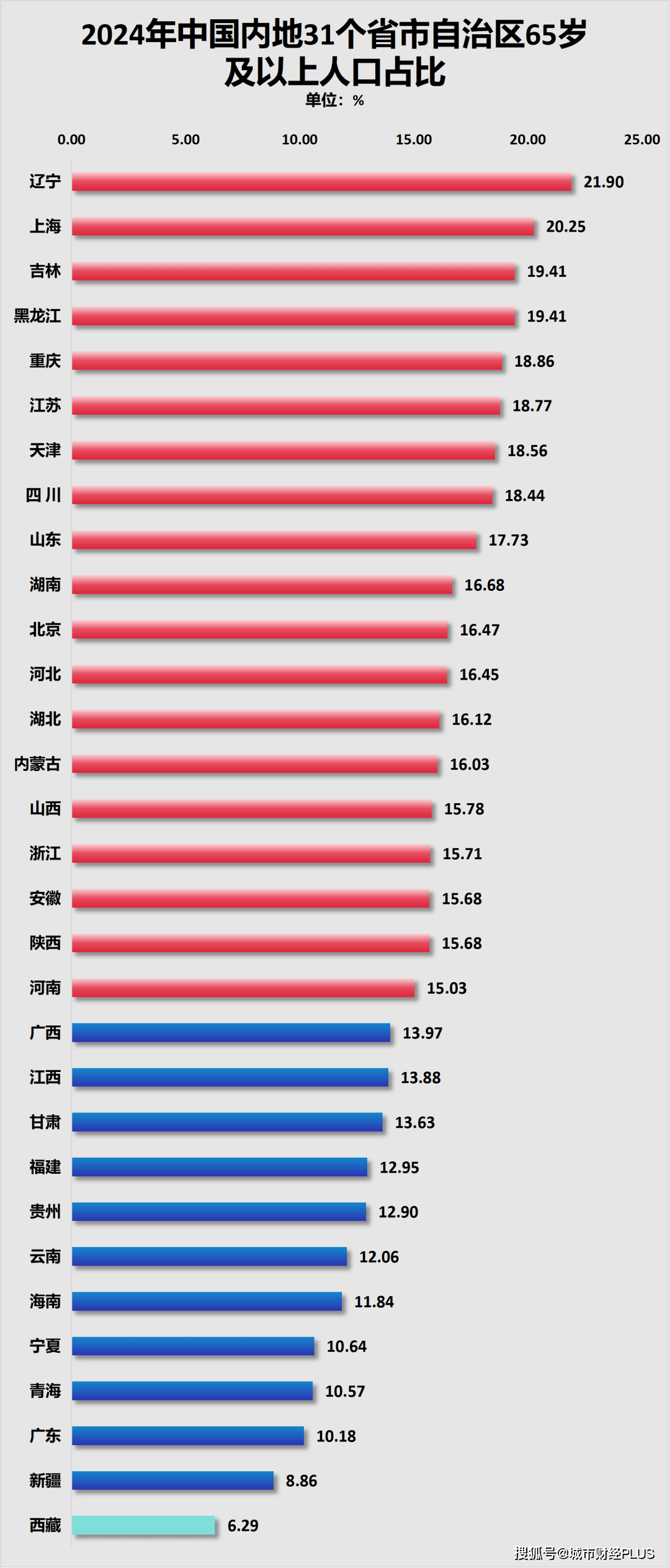 就各省数据来看,根据国家统计局公布的2025年中国统计年鉴数据来看,全国已有19个地区进入了深度老龄化社会,辽宁、上海、吉林、黑龙江、重庆位居前五。