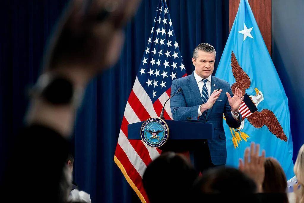 4月8日,美国国防部长在新闻发布会上发言