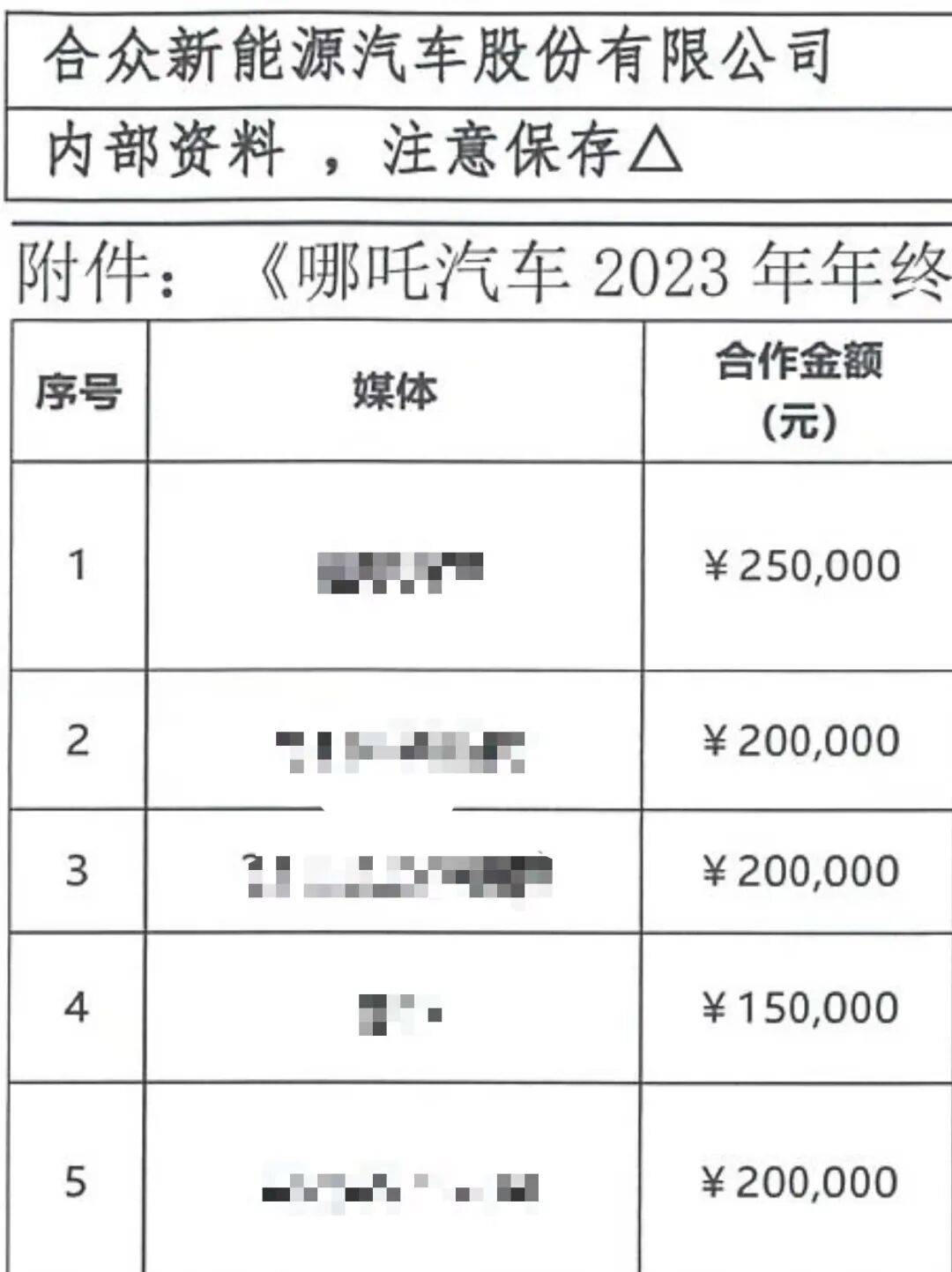 比如在2023年12月底,哪吒汽车曾通过供应商购买信息传播服务,仅9家媒体,一共花费就近150万元,其中仅购买某汽车自媒体单条图文及分发,就花了20万。