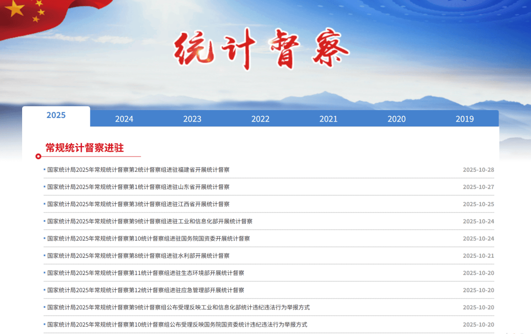 自2019年起,国家统计局每年派出督察组,对各省市区的统计数据进行全面核查。