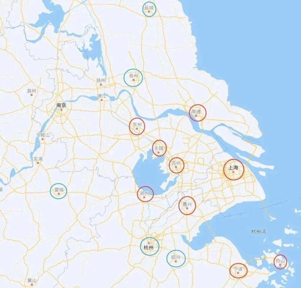 2022年,上海、江苏、浙江联合发布了《上海大都市圈空间协同规划》,这里面的上海大都市圈范围扩大至9个城市:
