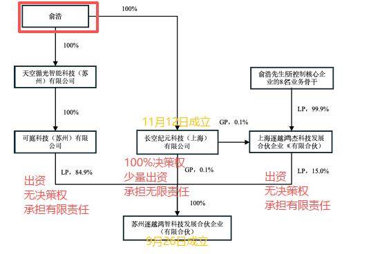 俞浩通过GP+LP的方式,对逐越鸿智实现100%控制。