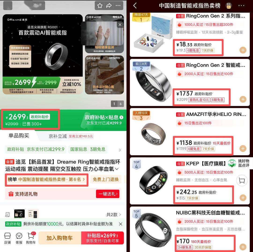 在智能戒指热卖榜追觅的AI戒指排第7,价格比前面6家都要贵。