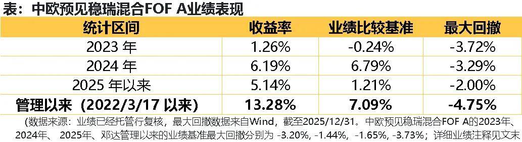 作为上文介绍的中欧预见稳瑞混合FOF的基金经理,邓达的硬核实力可见一斑。