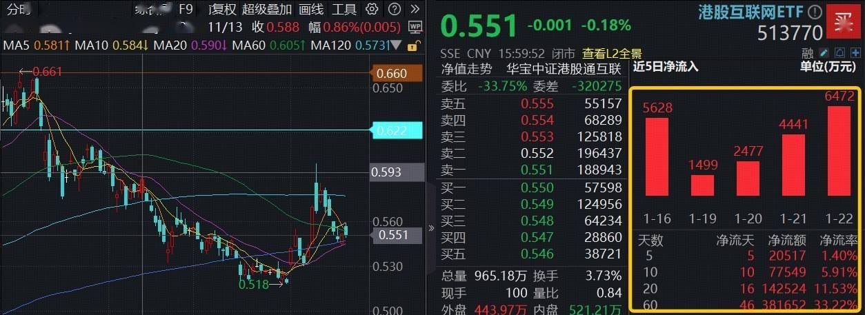 港股方面,近日整体延续震荡,港股AI核心资产——港股互联网ETF(513770)昨日高开回落,场内价格收跌0.18%。但资金坚定逆行,上交所数据显示,港股互联网ETF(513770)近20日累计获资金净流入14.25亿元,做多力量持续进场。