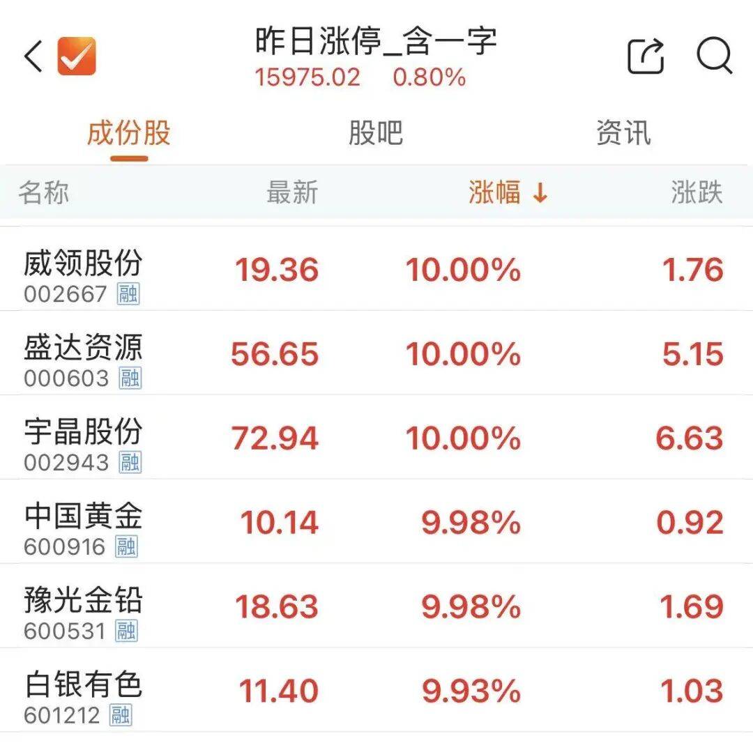 有色金属股大面积涨停