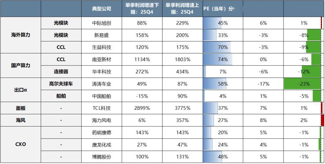 景气策略:高增赛道中,还有哪些低位滞涨的方向?海外算力、国产算力、出口α、海风、面板、CXO。在年报预告博弈结束后,尤其关注海外算力、国产算力的增配机会,近期北美一系列模型+算力工程进展看,产业变革仍在趋势中。