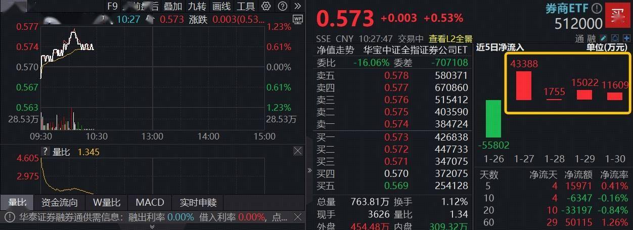 值得一提的是,近期银行、券商均获资金持续涌入。上交所数据显示,银行ETF(512800)近10日累计获资金净流入10.9亿元,券商ETF(512000)近4日连续吸金7.18亿元。
