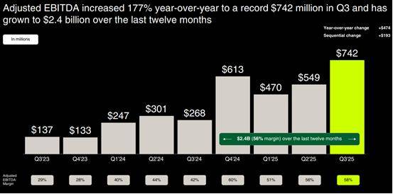 调整后EBITDA: 创纪录地达到7.42亿美元,是去年同期(2.68亿美元)的近 3倍。