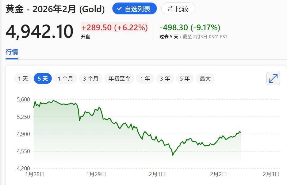 值得注意的是,在经历了此前的暴跌之后,当前金价已经出现了明显反弹的迹象。截至2月3日,伦敦金现报价已反弹至4919.09美元/盎司,单日涨幅高达3.06%,纽约金更是上涨6.17%,重新回到了4900美元/盎司以上的区间,市场看涨情绪再次升温。