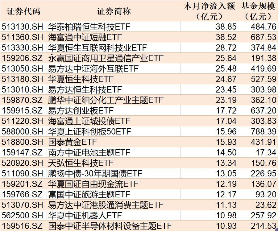 截至2月11日,本月资金净流入额居前20的ETF名单如下: