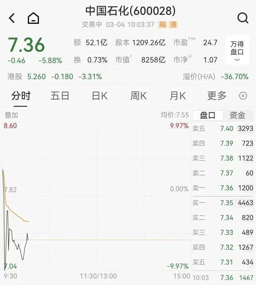 3月4日早盘,“三桶油”集体大跌,盘中中国石化、中国海油一度触及跌停,截至10:00左右,中国石油跌近3%,中国海油跌超4%,中国石化跌超6%。