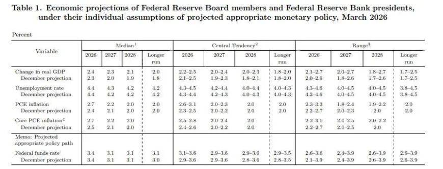 最新的点阵图显示,美联储官员预计2026年仅降息一次,2027年再降息一次,但内部存在显著分歧——19位委员中7人预计今年不降息。经济预测方面,美联储小幅上调2026年GDP增速至2.4%,同时将核心PCE通胀预期上修至2.7%。鲍威尔在新闻发布会上坦言,通胀回落速度不及预期,若物价无进展则不会降息。他强调,货币政策处于“限制性与非限制性的临界点”,未来将逐次会议决策。对于任期问题,鲍威尔表示若继任者未及时确认,将担任临时主席。