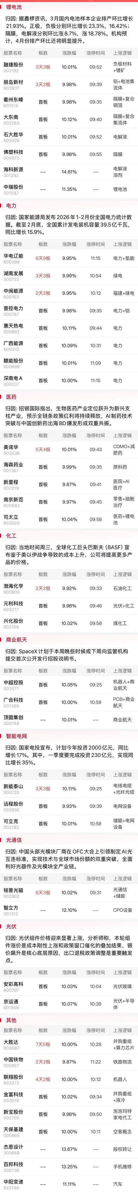 综合来看,今日早盘冲高回落,三大指数全线翻绿,量能大幅萎缩。其中锂电产业链全线走强,电解液、隔膜、锂矿等细分均涨幅居前,算力硬件方向同样延续强势,电力股探底回升,华电辽能晋级9连板。另一方面,电网设备、保险、军工等领跌。整体而言,市场在经历连续两日普涨,再度分化调整也在情理之中,后续仍可重点留意逆势品种。