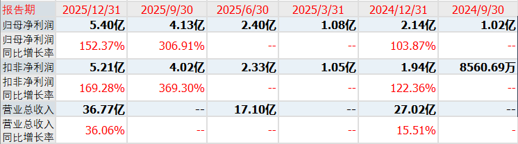 最近三年,公司的营收分别为23.40亿元、27.02亿元和36.77亿元,对应的扣非净利润分别为8703万元、1.94亿元和5.21亿元,上年的扣非净利润增速为169.28%。公司预计2026一季度营收比同比增长16.08%~22.53%,净利润同比增长10.85%~15.47%,扣非净利润同比增长9.70%~14.47%。