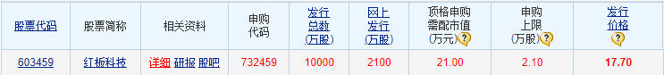 在机构询价结束后,红板科技的发行总数为10000万股,对应17.70元的发行价,它募集的资金总额为17.70亿元,较原募集规模缩水了。它的保荐人是国联民生证券。