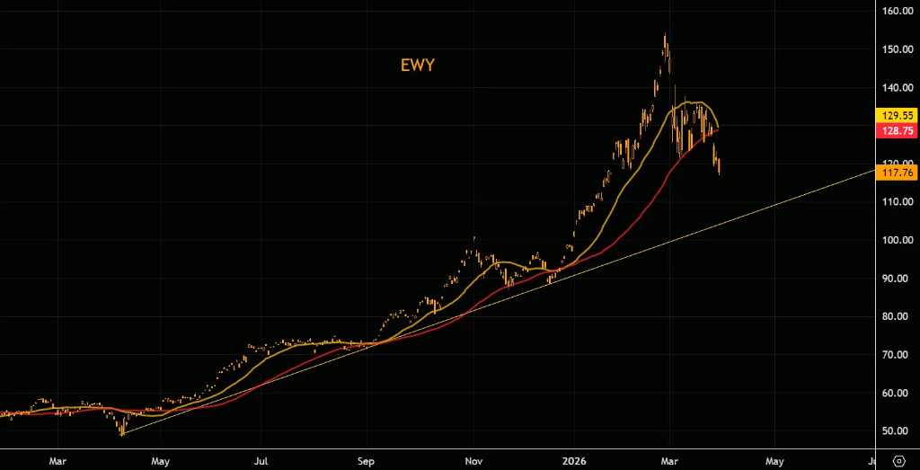 (追踪MSCI韩国指数的EWY韩国股票ETF下挫)