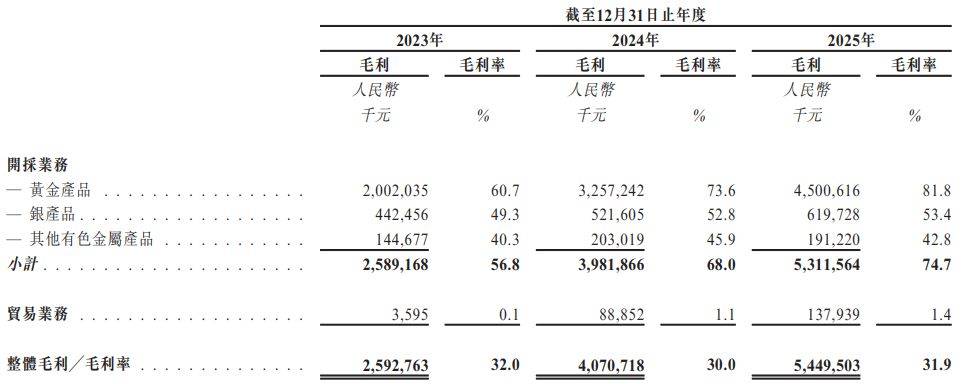 与此同时,该项业务的盈利能力与开采业务存在显著差异。招股书披露,报告期内贸易业务的毛利率分别为0.1%、1.1%和1.4%。以2025年为例,99.79亿元的贸易收益贡献了1.38亿元的毛利。相比之下,公司2025年开采业务收益为71.12亿元,毛利率为74.7%。