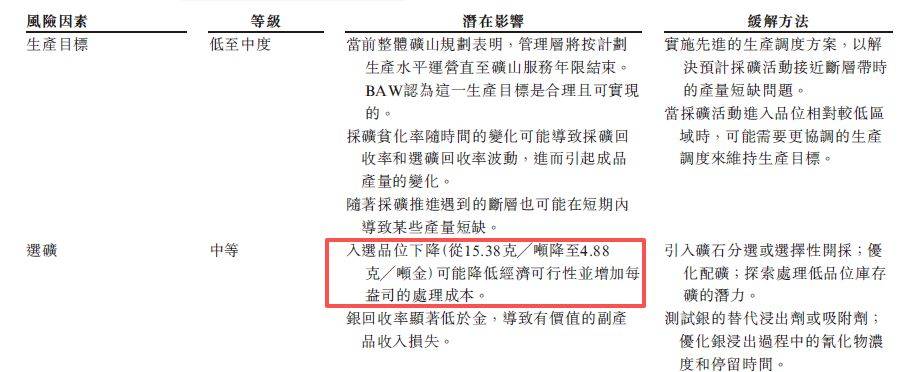 技术与运营风险同样存在于公司的其他既有资产。在黑河洛克矿区,合资格人士报告揭示了入选品位下滑风险。该矿区的入选品位正面临从每吨15.38克回落至每吨4.88克的挑战。这种品位下降将影响项目的经济可行性,并推高每盎司黄金的单位处理成本。