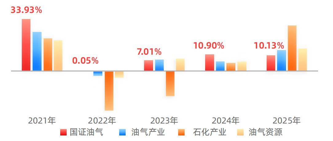 从自然年度看,在2021年至2025年五个完整年度中,分别上涨33.93%、0.05%、7.01%、10.90%和10.13%,充分彰显了能源核心资产的配置价值与穿越周期能力。