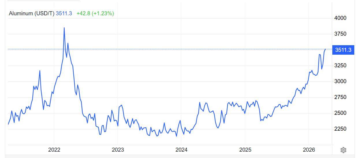 铝则更偏向交易供应冲击与能源成本剧烈冲击。这轮中东地缘政治冲突里,真正受到直接打击的是中东冶炼与物流链:中东约占全球原铝产量的约10%,而铝冶炼本身又是极度耗电的产业,所以霍尔木兹海峡封锁风险、海运受阻、冶炼厂受袭和不可抗力声明,会立刻放大市场对“现货供给断裂”的担忧。此外,铝这种轻级工业金属长期以来被视作铜的替代金属,尤其是在成本、重量敏感且对导电性要求相对宽松的应用场景中,这种替代趋势已有十多年之久,并在近年来因资源安全与新能源产业推动而加速,但在高可靠性、高功率应用场景中,铜仍不可替代。