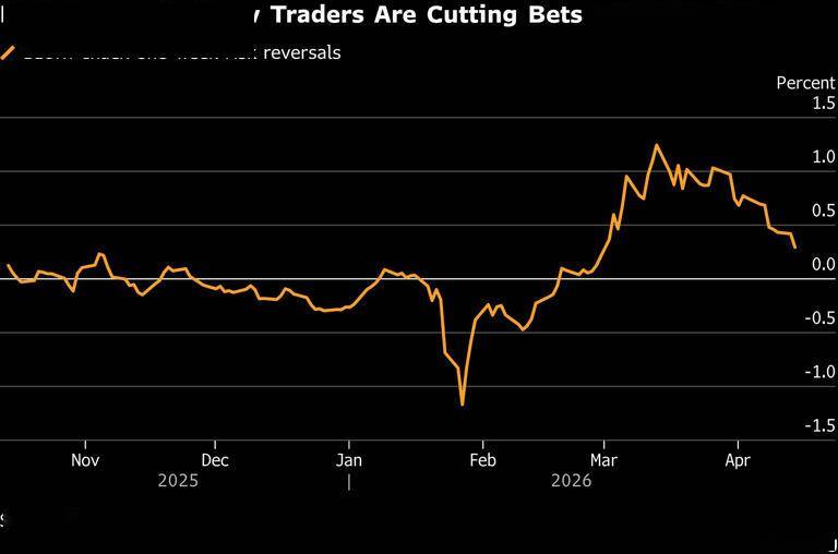 在期权市场上,彭博美元指数的所谓“风险逆转”指标显示,本月市场针对美元走强进行对冲的溢价,相较押注美元走弱的头寸已明显收窄。高盛4月15日的一份报告也指出,期权定价显示,过去几天市场对美元的战术性仓位已从上个月创下一年多来最乐观水平,转向大致中性。