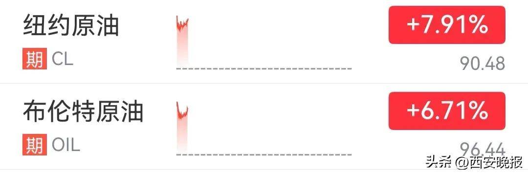截至发稿,WTI原油涨7.91%,布伦特原油期货涨6.71%。现货黄金跌1.28%,现货白银跌2.08%。