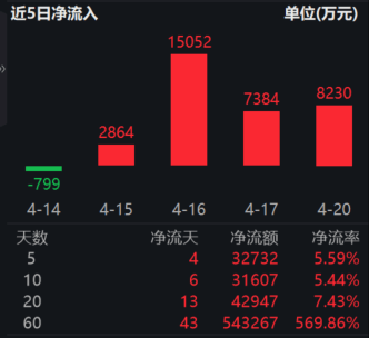 近期,随着全球算力需求的爆发与国内电网建设的提速,电网设备板块在资本市场展现出强劲的吸引力,电网设备ETF(561380)4月20日大涨3.43%,持续吸金,连续4日净流入超3亿元。成份股方面,起帆电缆、中天科技等个股相继涨停。