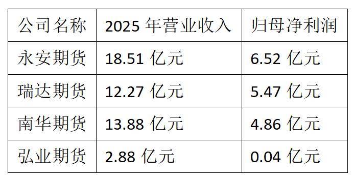 2025年,期货市场的规模、客户结构同步升级,全行业客户权益首次突破2万亿元大关,有效客户为278万户,机构资金成为市场主导力量。期货日报统计发现,上述4家期货公司合计实现营收47.54亿元,归属于母公司所有者净利润16.89亿元,整体保持盈利,但业绩分化显著,折射出行业发展模式的系统性变革。