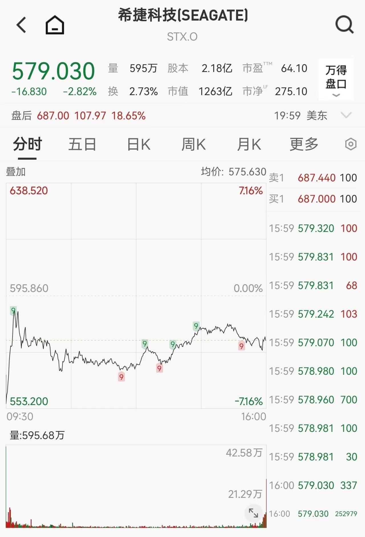 这意味着,AI对实体产业的拉动并非仅停留在算力芯片层面,而是已沿着产业链纵深传导至数据存储这一更底层的环节。希捷高管此前曾披露,公司产能已全部分配完毕,且产品已售罄至2026年。在周二财报发布前,希捷股价今年以来已上涨超过一倍。而财报发布后,盘后涨幅迅速扩大至18.65%。
